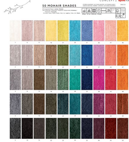 50 Mohair Shades, un fil haut de gamme disponible en 50 couleurs, ne peut que vous séduire. Créez et mélangez les couleurs à votre guise et tricotez des maxi pulls et d'énormes écharpes dans lesquelles vous enveloppez complètement.