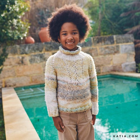 Pelote de 100 g et 150 m. Il est conseillé d'utiliser des aiguilles à tricoter de 5-5,5 mm ou un crochet de 5,5-6 mm. 6 pelotes sont nécessaires pour la confection d'un pull à longues manches pour femme en taille 42. Pour obtenir un échantillon de 10x10cm, tricoter 17 mailles sur 22 rangs. Lavage en machine avec un cycle laine à 30°C max. Ne pas mettre au sèche-linge.