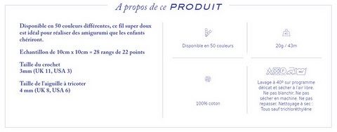 Happy Cotton est un fil 100% coton spécialement conçu pour la réalisation de petits amigurumis et autres objets au crochet. Pelote de 20g et 43m