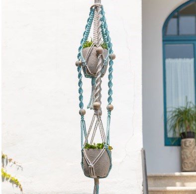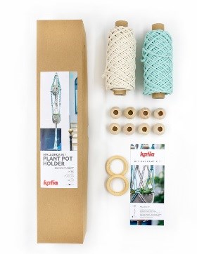 Le kit Mallorca contient les matériaux et les instructions pour réaliser un double cache-pot suspendu en macramé de deux colours. Apprenez à faire les noeuds de macramé de base grâce à nos vidéos pas à pas. Fournitures : 1 bobine de corde col. écru + 1 bobine de corde col. bleu d'eau, 1 anneau en bois de 6 cm de diamètre, 8 perles moyennes en bois