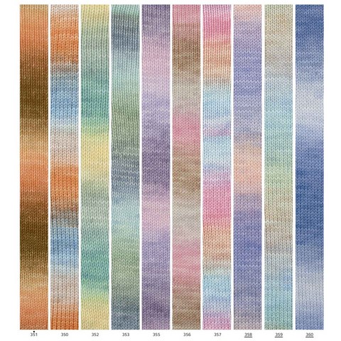 Pelote de 50 g et 165 m. Il est conseillé d'utiliser des aiguilles à tricoter de 3-3,5 mm ou un crochet de 3-3,5 mm. 9 pelotes pour la confection d'un pull à longues manches pour femme en taille 42. échantillon de 10x10cm, tricoter 26 mailles sur 32 rangs. Lavage en machine avec un programme d'essorage court à 30°C max. Séchage en machine.