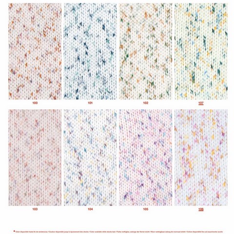 Pelote de 200 grammes et de 480 mètres. C'est un fil fin pour lequel il est conseillé d'utiliser des aiguilles ou un crochet de 3,5-4 mm. Pour obtenir un échantillon de 10x10 cm, tricoter 22 mailles sur 29 rangs. Lavage en machine avec le programme laine à 30ºC maximum. Séchage en machine.