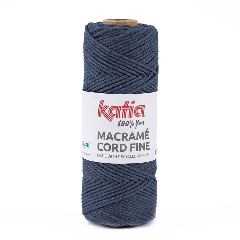 Bobine de corde faite avec des matériaux 100% recyclés pour réaliser tout type de projets en macramé. Une cordelette de 2,5 mm d'épaisseur au grand rendement. Macramé Cord Fine se compose de coton issu du recyclage de tissus et de polyester recyclé issu de bouteilles grâce au système de production durable ECOLIFE.Longueur 100mts