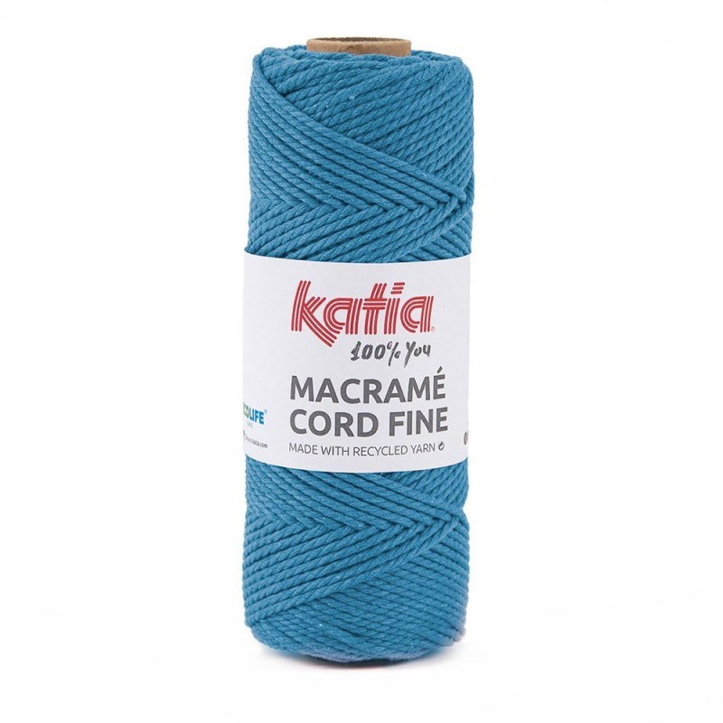 Bobine de corde faite avec des matériaux 100% recyclés pour réaliser tout type de projets en macramé. Une cordelette de 2,5 mm d'épaisseur au grand rendement. Macramé Cord Fine se compose de coton issu du recyclage de tissus et de polyester recyclé issu de bouteilles grâce au système de production durable ECOLIFE.Longueur 100mts