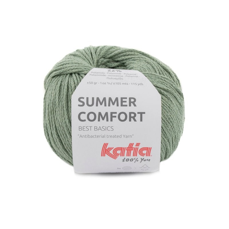 Pelote de 50 grammes et 105 mètres. Il est conseillé d'utiliser des aiguilles à tricoter de 3,5 -4 ou un crochet de 3,5 - 4. 3 pelotes sont nécessaires pour faire un bikini. Pour obtenir un échantillon de 10x10cm, tricoter 23 mailles sur 33 rangs. Lavable en machine.
